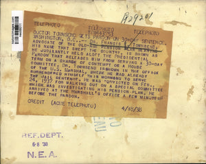 Dr. Francis E. Townsend gets pardon for sentence at US Marshal in Washington, D.C.