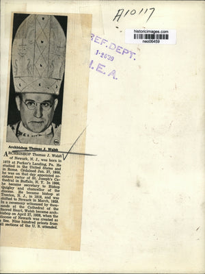 1939 Press Photo Archbishop Thomas J. Walsh of Newark, New Jersey - neo06459
