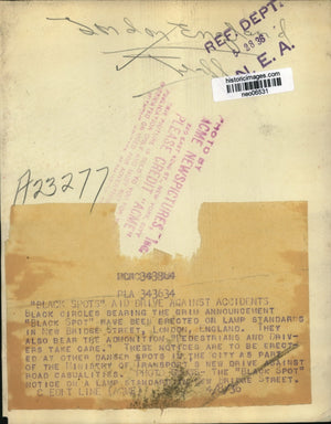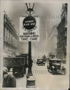 1936 Press Photo "Black Spot" Traffic Accident Signs, New Bridge Street, London