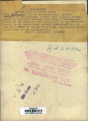 1932 Press Photo Karl Herreshoff held in Geneva Riots at World Peace Center