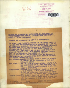 Notable People Named by Joseph V. Connolly; Lucien Muhatore, Tom Meighan, William Randolph Hearst, & Gene Tunney