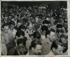 1944 Press Photo Workers Praying for Allied Army at Todd Shipyards Corp, Hoboken