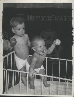1935 Press Photo two babies at St. Ann's Foundation Orphanage in Cleveland