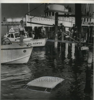 1959 Press Photo Car Submerged in Los Angeles Harbor After Richard Pote Crash