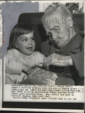1956 Press Photo Jennie Howell, 109 Years Old, & Great-Granddaughter, California