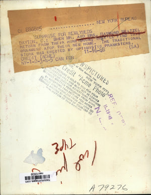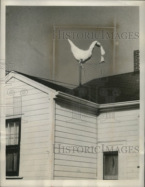 1948 Press Photo Mr. & Mrs. Raymond Weltzel find stork atop their roof in Dayton