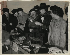 1940 Press Photo White elephant sale & women at the purse counter - neo10962