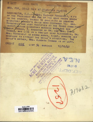 1940 Press Photo Eleanor Roosevelt at Migratory Workers Hearing, Washington D.C.