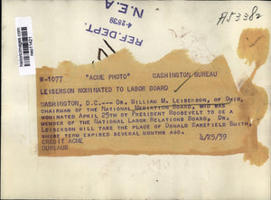 Dr. William M. Leiserson chairman Natl Meditation Board. Nominated by Roosevelt.
