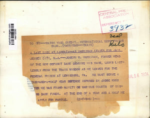 1934 Press Photo Joseph W. Harriman at Train Station, Jersey City, New Jersey