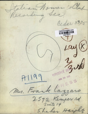 1935 Press Photo Mrs. Frank Lazzaro, Italian Women's Club, Shaker Heights OH