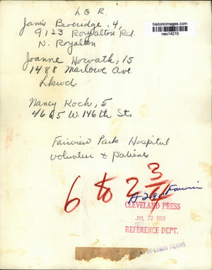 1955 Press Photo Fairview Park Hospital Janis Beveridge, Joanne Howath,