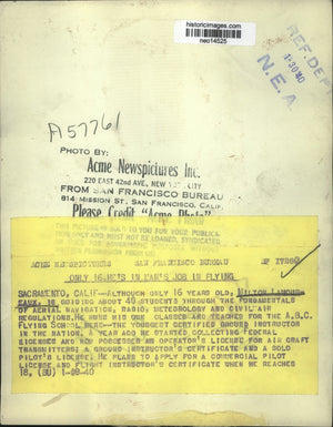 1940 Press Photo Pilot Milton Lamoureaux Trains Fliers, Sacramento, California