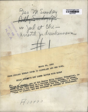 1930 Press Photo George M Sunday Arrested on Charges of Drunkeness, Chicago