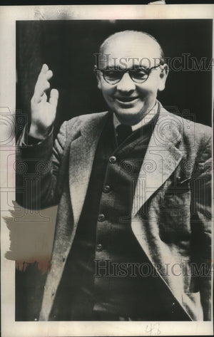 1949 Press Photo Gerhart Eisler waves and smiles as he leaves Bow Street court