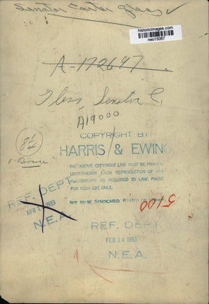1933 Press Photo Senator Carter Glass from Virginia - neo15067