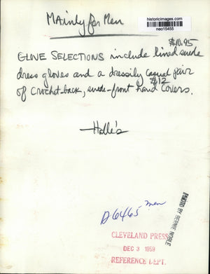 1959 Press Photo Mainly Men's Gloves: Lined Suede, Crochet-Back, and Suede-Front