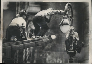 1950 Press Photo Union Square, New York Left-Wing Demonstrator on Light Pole