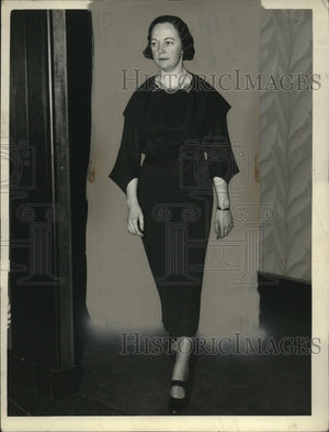 1937 Press Photo Jane Davis models dark colored evening dress - neo17130