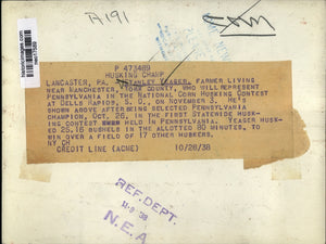 1938 Press Photo Stanley Yeager Represents Pennsylvania in Corn Husking Contest