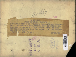 1935 Press Photo Colonel Frank Knox, Republican Presidential Candidate