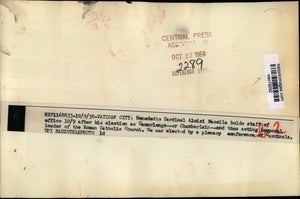 1958 Press Photo Benedetto Cardinal Aloisi Masella at the Vatican new Camerlengo