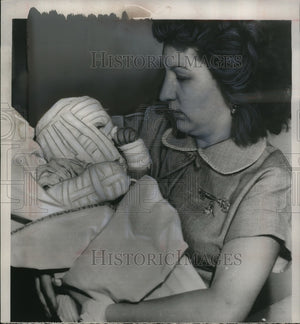 1954 Press Photo Mrs. Carleene Chavez Holds Her Burn-Injured Infant, Randy