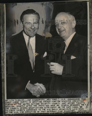 1957 Press Photo US Ambassador Henry Cabot Lodge & Christian Pineau at UN