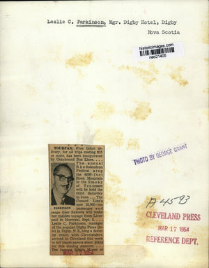 1954 Press Photo Leslie C. Parkinson, Mgr. of Digby Hotel, Digby, Nova Scotia