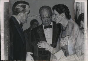 President Eisenhower listens to a conversation with Max Petitpierre, Frances Willis during a dinner party given by Petitpierre for the delegates to the Big Four conference.