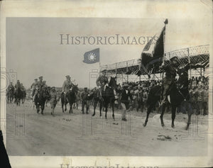 1931 Press Photo Soldiers on horses carrying banners - neo23717