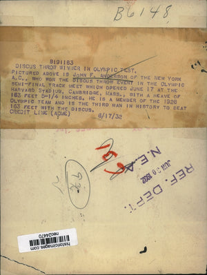 1932 Press Photo John F Anderson wins discus at Olympic trials 163' 5 1/4"