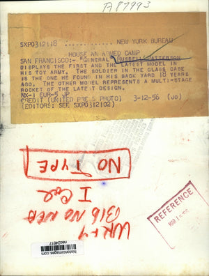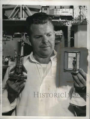 1956 Press Photo Gen. Russell Patterson displays model toy army - neo24617
