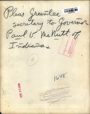 1934 Press Photo Pleas Greenlee Secretary to Governor Paul McNutt of Indiana