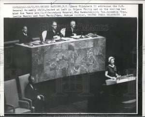 1957 Press Photo Queen Elizabeth of England addresses the UN General Assembly