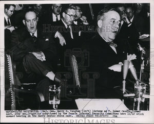 1953 Press Photo Maj Gen Harry H Vaughn & Lamar Caudle at Senate hearing