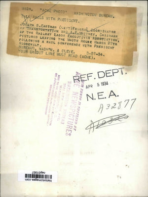 1934 Press Photo Joseph Eastman & AF Whitney at meeting at White House