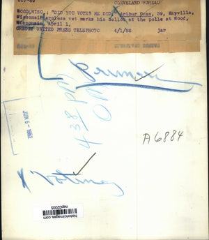 1952 Press Photo Arthur Guse Mayville Wisconsin veteran at voting polls
