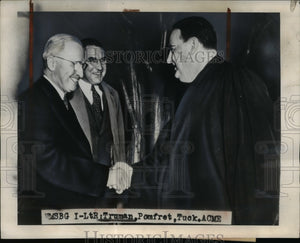 1948 Press Photo President Truman. Gov William Tuck of VA, Dr John Pomfret