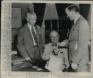 1947 Press Photo President Truman, AMVET Cmdr Ray Sawyer, Rep F Walter