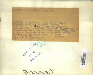 1946 Press Photo President Truman & Mrs Walter G Craven American Legion Aux