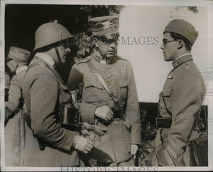 Crown Prince Gustaf Adolf of Sweden, with his son, Prince Carl Johan, and a cadet in the Royal Life Guards, and General Cederschiold pictured while attending a maneuver of Swedish Army.