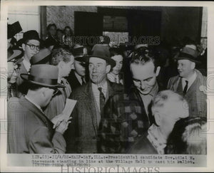 1952 Press Photo Gov. Adlai tevenson Casts His Ballot At The Village Hall