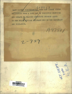 Mary Norton, congresswoman from New Jersey, finds relaxation from a long day of committee meetings and debate by reading detective stories aloud to her niece, Lucille McDonagh.