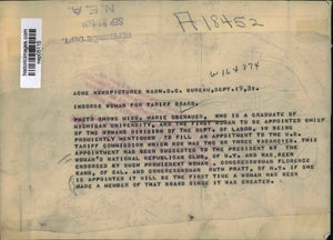 Miss Marie Obenauer is being prominently mentioned to fill an appointment to the U.S. Tariff commission which now has a two or three vacancies.