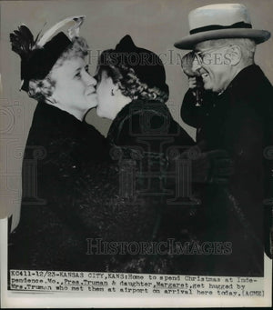1950 Press Photo Harry S. Truman, Daughter Margaret & Wife Bess in Kansas City