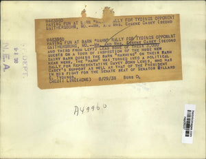 1938 Press Photo Eugene Casey & Guests at Davey John Lewis Barn Warm Rally