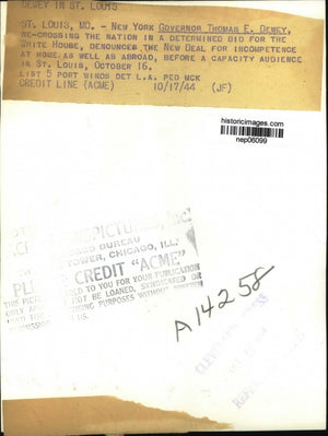 1944 Press Photo Presidential candidate Thomas Dewey speech in St Louis MO