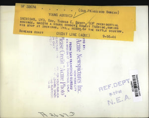 1944 Press Photo GOP Presidential candidate Thomas Dewey & Robert McBride in WY