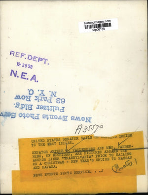 1938 Press Photo Senator Arthur Vandenberg & Wife Hazel Aboard SS Transylvania